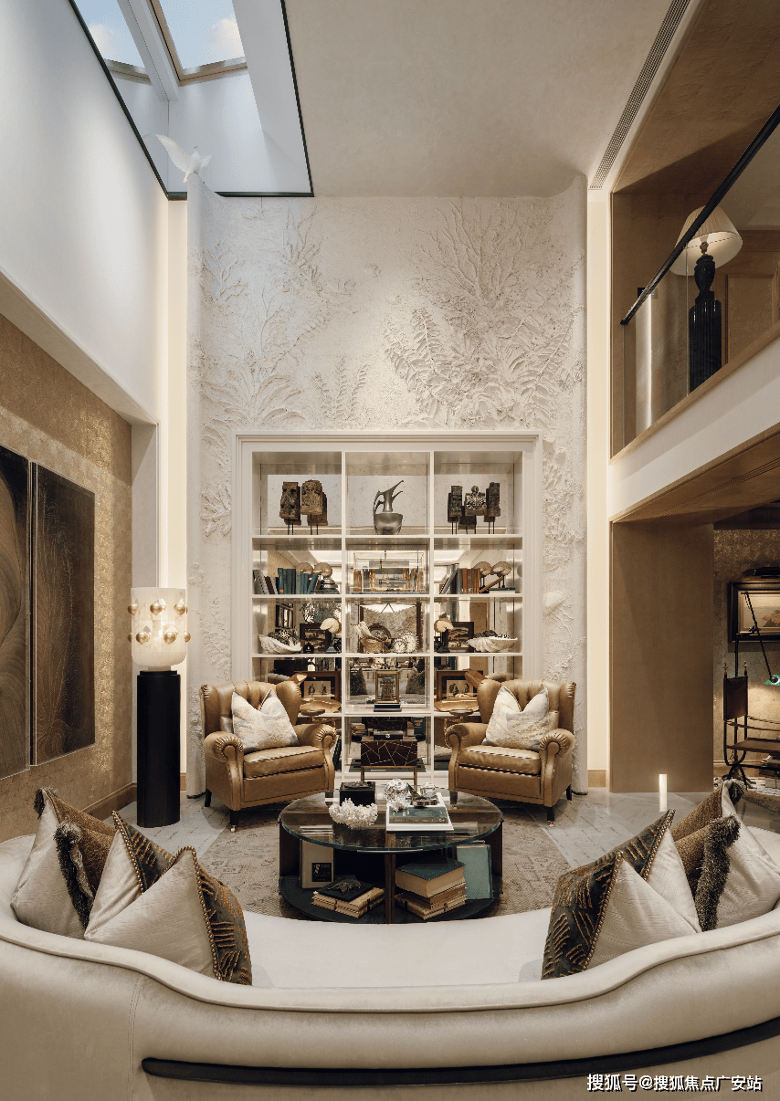 约117㎡地基层:会客休憩之余,别墅还有专属家族乐趣空间。极致挑高并附带夹层,采光庭院引光入室,通透场域可打制私家藏品陈展区、雪茄吧、茶馆、家庭影院或瑜伽健身房等,营制更多立体化的糊口场景。